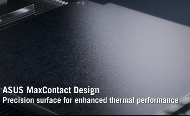 Το MaxContact είναι μια ειδική διαδικασία κατασκευής της ASUS που επεκτείνει αποτελεσματικά την επιφάνεια του διανομέα θερμότητας που βρίσκεται πάνω από την GPU κατά 5%, σε σύγκριση με τα παραδοσιακά σχέδια. Αυτό βελτιώνει τις θερμοκρασίες έως και 2°C, σε συνδυασμό με μια εκτεταμένη διάταξη ψύκτρας και ισχυρούς ανεμιστήρες τεχνολογίας Axial.