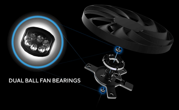 Τρεις δοκιμασμένοι και αξιόπιστοι ανεμιστήρες Axial-tech διαθέτουν μικρότερο κόμβο που επιτρέπει μακρύτερες λεπίδες και δακτύλιο φραγμού για την αύξηση της πίεσης του αέρα προς τα κάτω για χαμηλότερες θερμοκρασίες, λιγότερο θόρυβο και υψηλότερη απόδοση