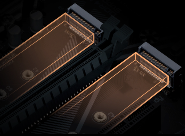 Με ενσωματωμένες υποδοχές NVMe PCIe 4.0*/3.0 x4 και PCIe 3.0 x2 M.2, οι μητρικές GIGABYTE προσφέρουν στους χρήστες την εμπειρία συνδεσιμότητας σε λειτουργία NVMe ή λειτουργία SATA για συσκευές M.2 SSD. Παρέχοντας ταχύτητα μεταφοράς δεδομένων έως και 64 Gb/s, ο σχεδιασμός των διπλών υποδοχών M.2 παρέχει μια ιδανική λύση αποθήκευσης, ενώ παράλληλα υποστηρίζει λειτουργίες RAID.
