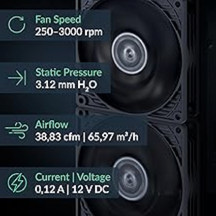 Ο P9 PWM PST CO είναι ένας ισχυρός ανεμιστήρας 92 mm με ταχύτητα από 200 έως 3000 στροφές/λεπτό. Παρέχει στατική πίεση 3,12 mmH2O και παράγει ροή αέρα 38,83 cfm. Χάρη στη διαμόρφωση πλάτους παλμού (PWM), επιτρέπει τον ακριβή έλεγχο της ταχύτητας του ανεμιστήρα και είναι εξαιρετικά ενεργειακά αποδοτικός με κατανάλωση μόλις 0,12 A. Διαθέτει επίσης λειτουργία 0 dB που εξασφαλίζει αθόρυβη λειτουργία σε αδράνεια.