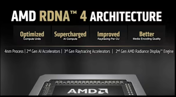 Η αρχιτεκτονική RDNA™ 4 στην οποία βασίζεται εισάγει βελτιστοποιημένες υπολογιστικές μονάδες (Compute Units ή CUs) με 2ης γενιάς επιταχυντές Τεχνητής Νοημοσύνης (AI Accelerators) και βελτιωμένη απόδοση ακτινανίχνευσης με 3ης γενιάς hardware επιταχυντές Ray Tracing. Επιπλέον, περιλαμβάνει τη 2ης γενιάς Radiance Display™ Engine, DisplayPort™ 2.1a/HDMI™ 2.1b και έχει κορυφαίες δυνατότητες κωδικοποίησης μέσων (AV1 Media Encoding).