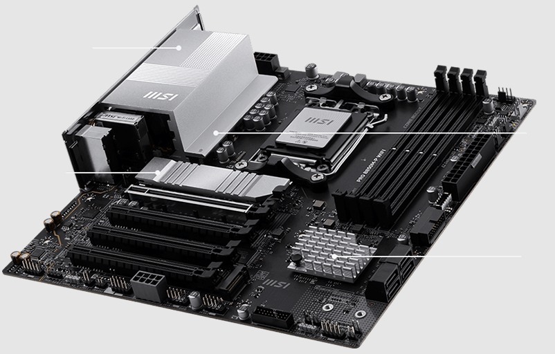 Απελευθερώστε και διατηρήστε τη μέγιστη απόδοση με σχεδιασμό VRM που έχει κατασκευαστεί με συνολικά 7+2+1 ψηφιακές φάσεις τροφοδοσίας. Με υποδοχή τροφοδοσίας 8 ακίδων, το PRO B850M-P WIFI είναι έτοιμο για την πρόκληση εργασιών μεγάλου φόρτου.