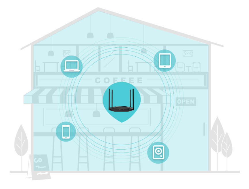 Τέσσερις εξωτερικές κεραίες εξοπλισμένες με τεχνολογία Beamforming συγκεντρώνουν σήματα Wi-Fi προς τις συσκευές σας για να επεκτείνουν το αξιόπιστο Wi-Fi σε κάθε γωνιά του σπιτιού ή του γραφείου σας, ακόμη και σε μεγάλες αποστάσεις.