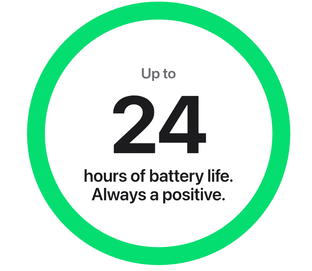 Με έως 24 ώρες κανονικής χρήσης. Και γρήγορη φόρτιση για έως 8 ώρες χρήσης σε μόλις 15 λεπτά.